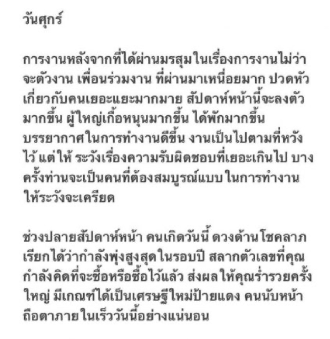 ว่าด้วยศาสตร์แห่งดวงดาว การโคจร เปลี่ยนทิศทางหรือขยับเปลี่ยนที่ย่อมส่งผลต่อเจ้าของเรือนชะตา นำพามาซึ่งเรื่องดีหรือร้าย อยู่ที่ผลบุญผลกรรมของแต่ละคน ซึ่งจะส่งผลเอื้อไปกับบุญกุศลที่ทำมานั้น  การรู้คำทำนายทายทักล่วงหน้า  ย่อมช่วยให้เจ้าเรือนชะตาระวังในการก้าวเดินได้ดีขึ้น อ่านคำทำนายวันนี้